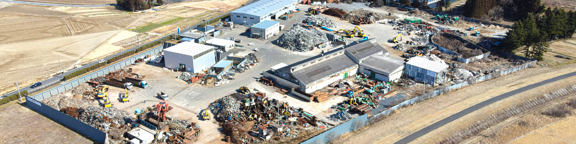 三陸自動車道 仙台港北ICから車で東へ約5分の立地。仙台港に近く、輸出向けスクラップを取り扱うヤードです。金属スクラップ買取の他、産業廃棄物中間処理施設(金属くず、廃プラスチック類)としても機能しています。